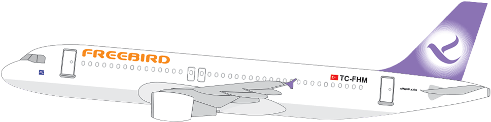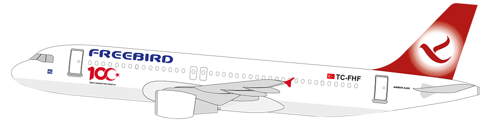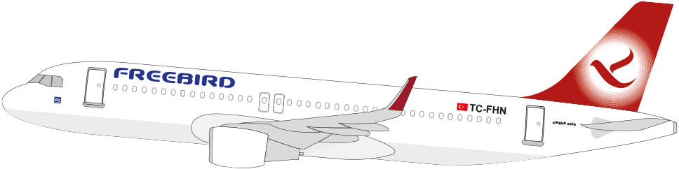 Freebird Airlines operates with a fleet of 11 A320 aircraft, while Freebird Europe operates with a fleet of 3 A320 aircraft.
